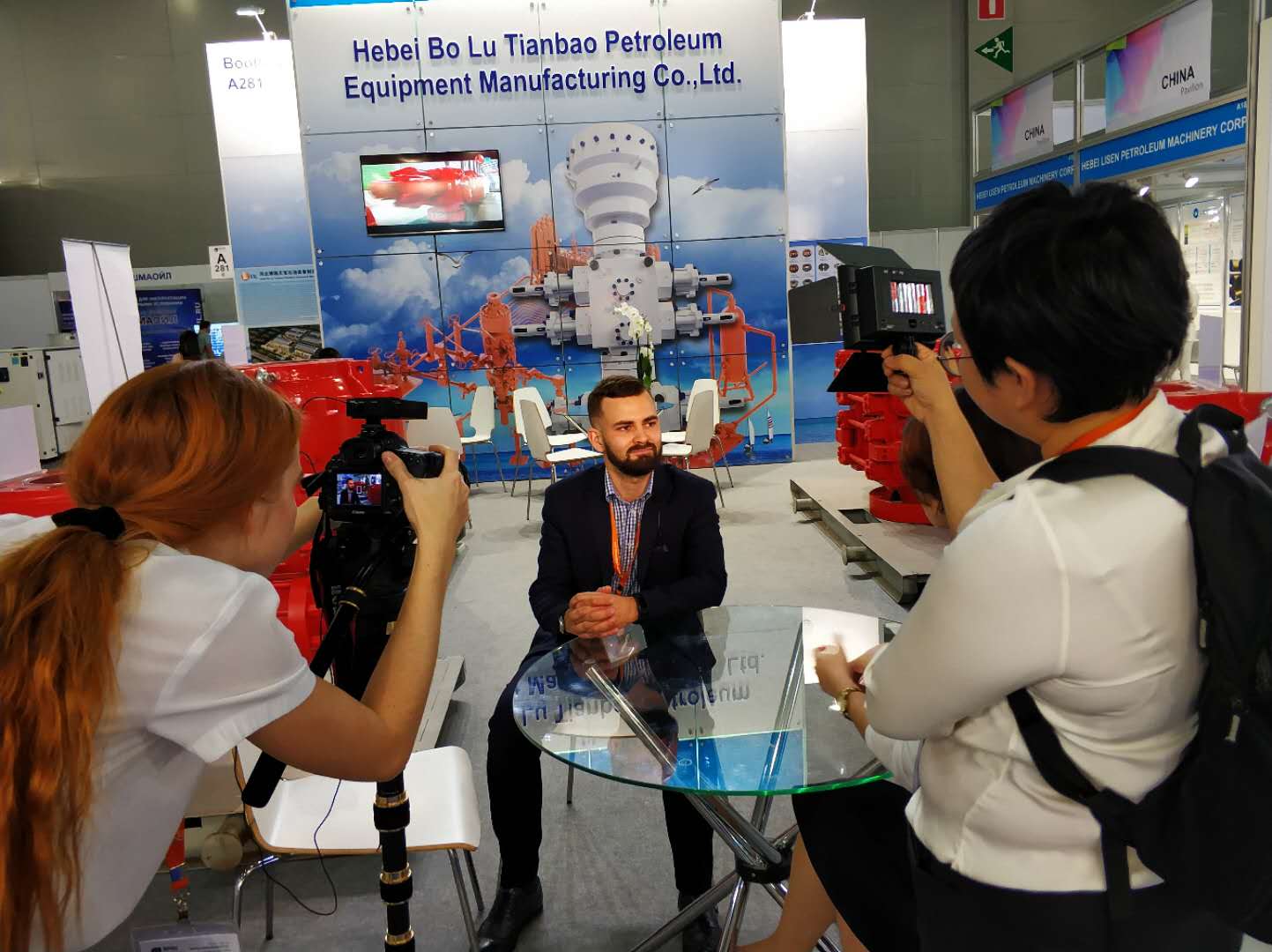 展会主办方ITE的记者专门来展台进行采访,公司俄罗斯籍员工Yurkov Kirill对博路在短时间内进入俄罗斯市场、今后俄罗斯市场的布局等方面做了一一介绍。记者对防喷器产品做了近距离的特写,在主办方网站上播放,“中国制造”“博路品牌”得到广泛宣传,公司知名度、影响力得到进一步提升。